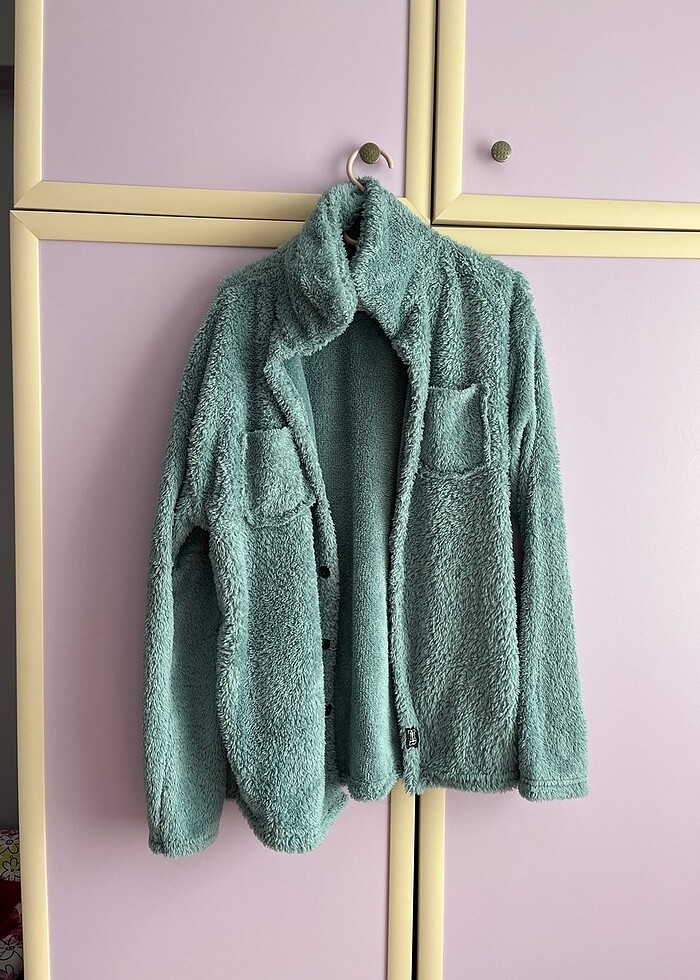 Peluş turkuaz ceket
