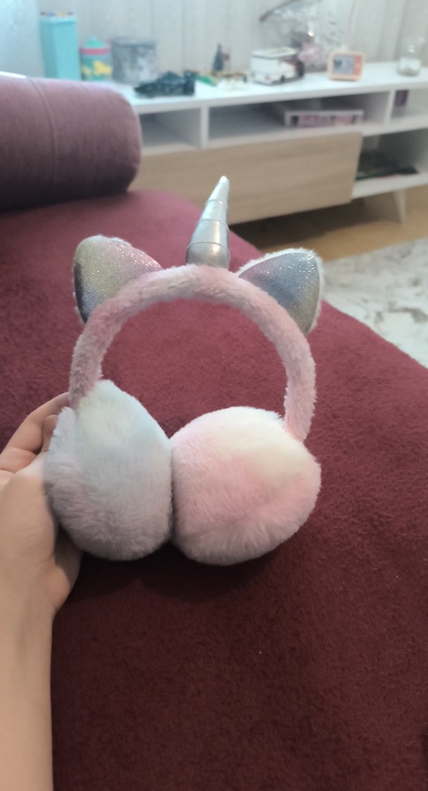 Yumuşak peluş detaylı, pembe tie-dye desenli unicorn kulaklık. Pastel renklerde, rock punk tarzına uygun.