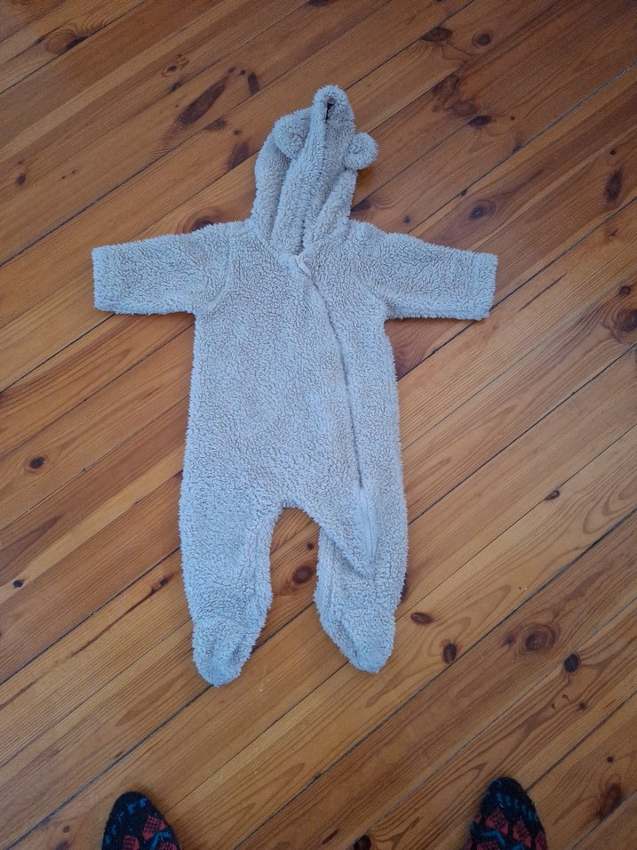 pelus cok cok kullanışlı. Kapüşonlu ve tam kapalı, yumuşak ve sıcak gri örgü bebek tulumu.