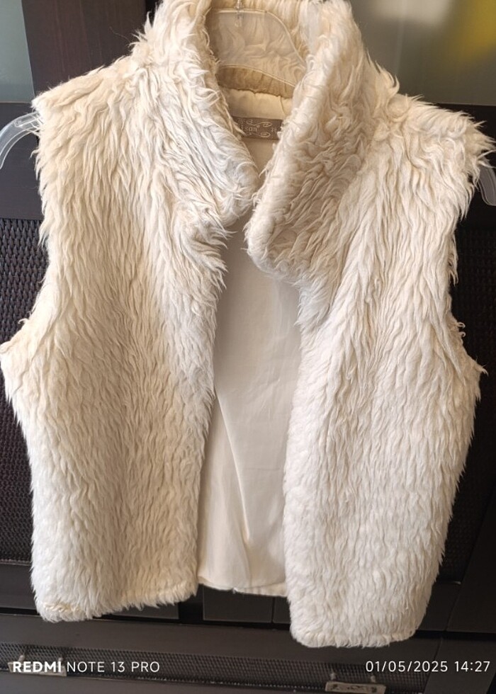 Pelus yelek . 38 beden,ekru renkte, içi astarlı,birkac kez kullanıldı.