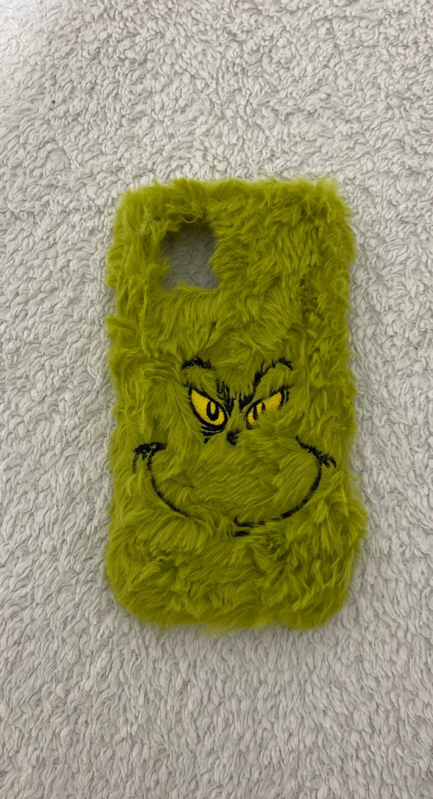 Yumuşak peluş dokulu, yeşil renkli ve pop kültür Grinch yüzü desenli telefon kılıfı. Cihazınıza eğlenceli bir hava katar. Iphone 12/ 12 Pro