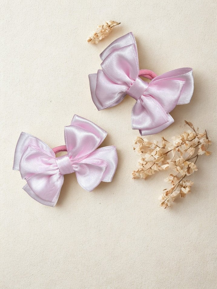 Pastel pembe renkte, fiyonk detaylı çocuk saç tokası. Yumuşak ve parlak dokusuyla sade, bohem tarzı tamamlar.