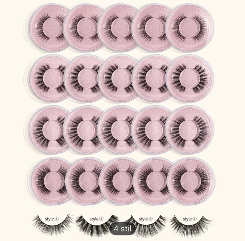 Pembe renkte, dört farklı stilde hafif takma kirpik seti. Yumuşak ve hacimli kirpiklerle gözlerinize renkli bir dokunuş sağlar.