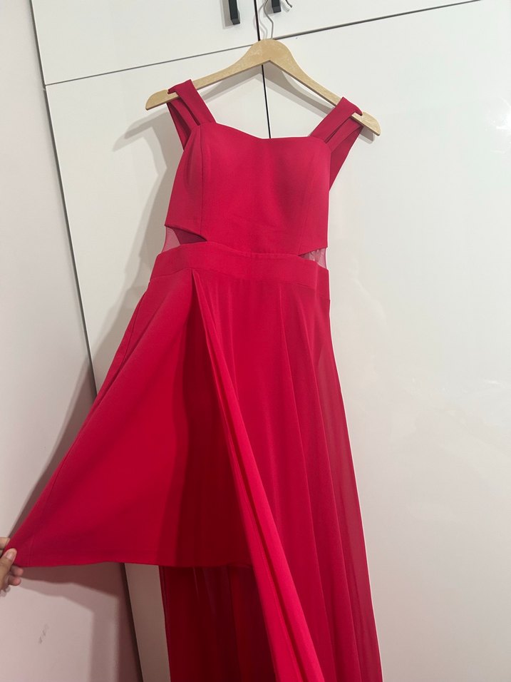 40 Beden, pembe nar çiçeği tonlarında, içinde kısa eteği var üstü tüllü uçuş uçuş bir elbise. İyi durumda. Pazarlık payı mevcuttur.