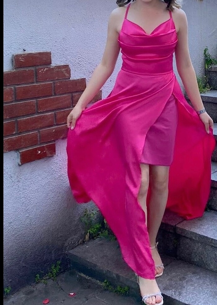 Pembe abiye elbise
