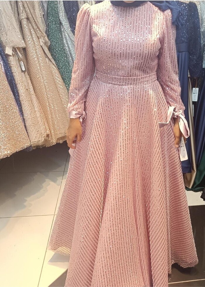 Pembe Abiye İşlemeli