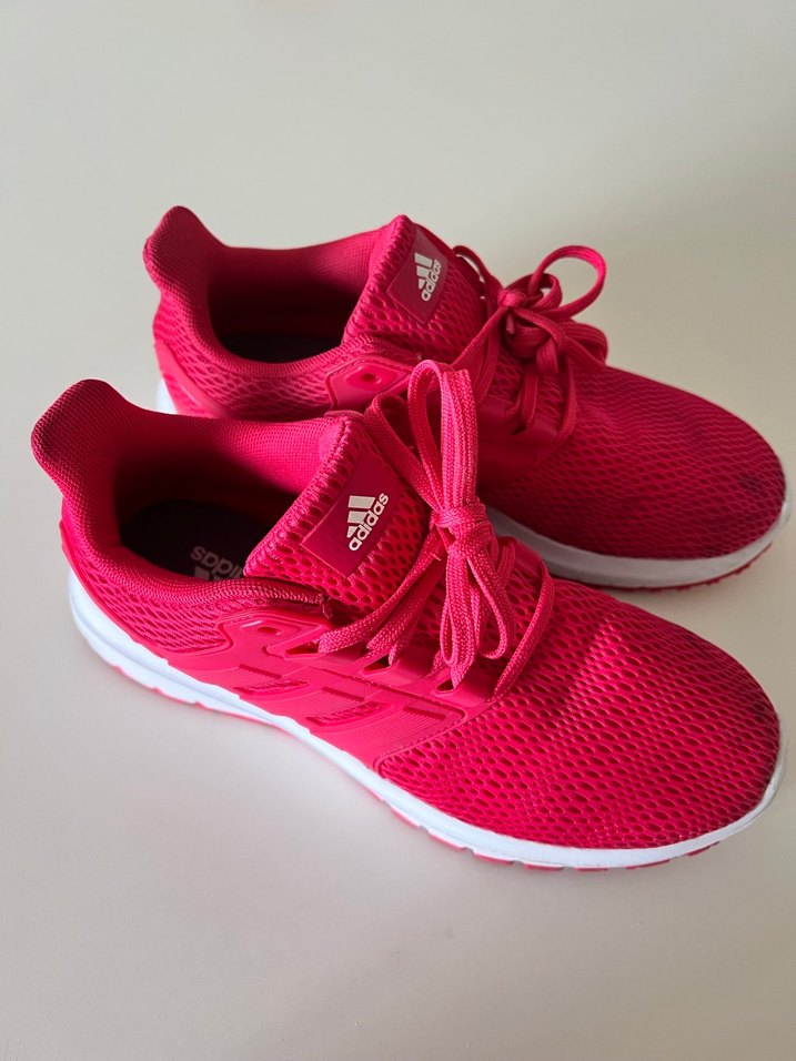 Pembe Adidas bağcıklı kadın spor ayakkabısı, rahat kauçuk tabanlı, sportif ve günlük sokak stili için uygundur. Orijinal üründür.