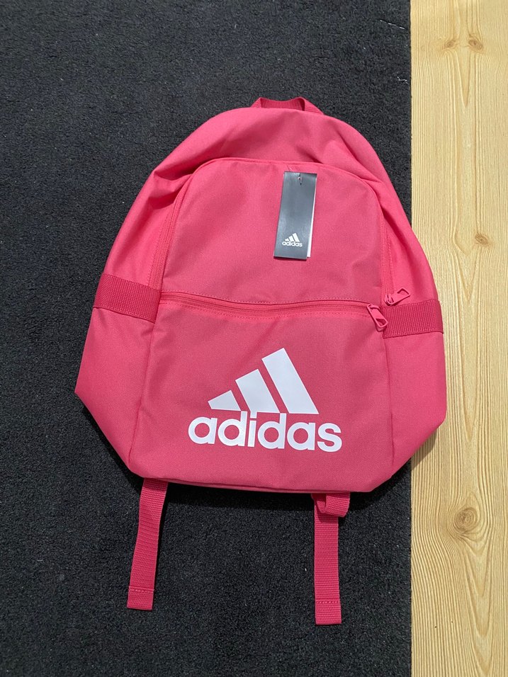 Pembe Adidas sırt çantası, tokalı detaylara sahip, sentetik kumaştan üretilmiş ve spor ile sokak stiline uygun. Canlı renkli ve baskılı logo içerir. Birkaç kez kullanıldı ORJİNAL
