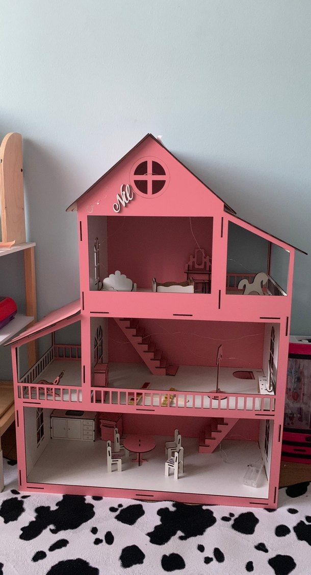 Aydınlık pembe renkte, çok odalı ve mobilyalı ahşap oyuncak ev. Gebze/Darica Kocaeli ya da Tuzla/Bostanci Istanbul elden de teslim edebilirim. Demonte ederek kargo ile gönderim sağlayabilirim.