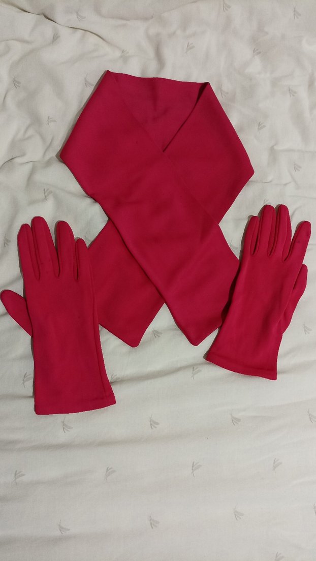 Pembe eldiven ve fular takımı