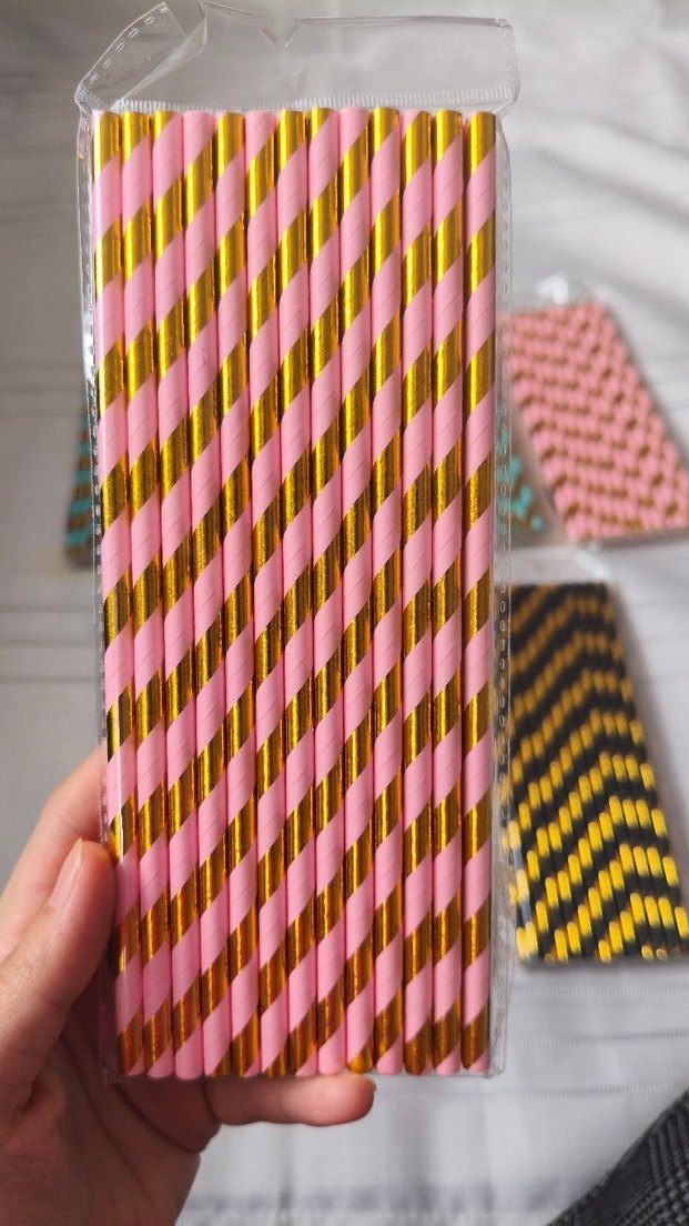 İSTEDİĞİNİZ RENGİ MESAJ OLARAK BELİRTİNİZ.. Pembe ve altın çizgili renkli parti pipetleri, kutlamalara şık bir dokunuş katar.