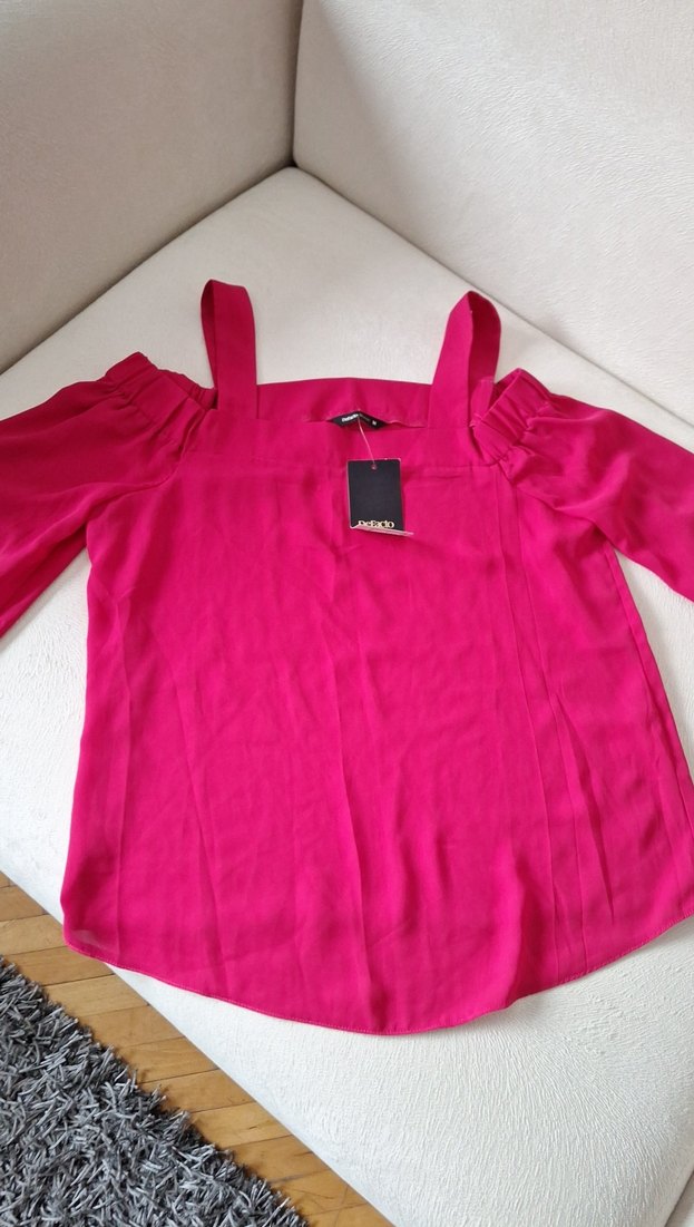 Pembe askılı ve bol kesim kadın bluz. sentetik kumaştan midi boyda, günlük ofis tatil rahat kullanım için uygun.