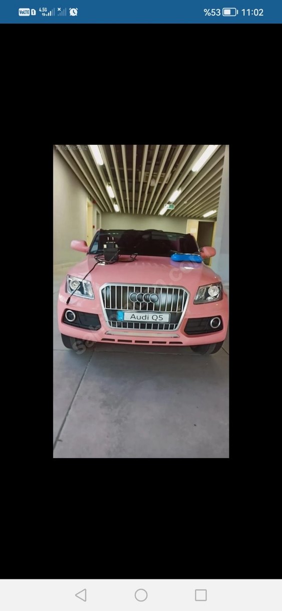 Sadece aküsü değişecek 700₺ kızım artık büyüdüğü için satıyorum Pastel pembe renkte, Audi Q5 modelini andıran elektrikli oyuncak araba. Detaylı ön ızgara, farlar ve yan aynalar içerir. Çocuklar için uygundur.