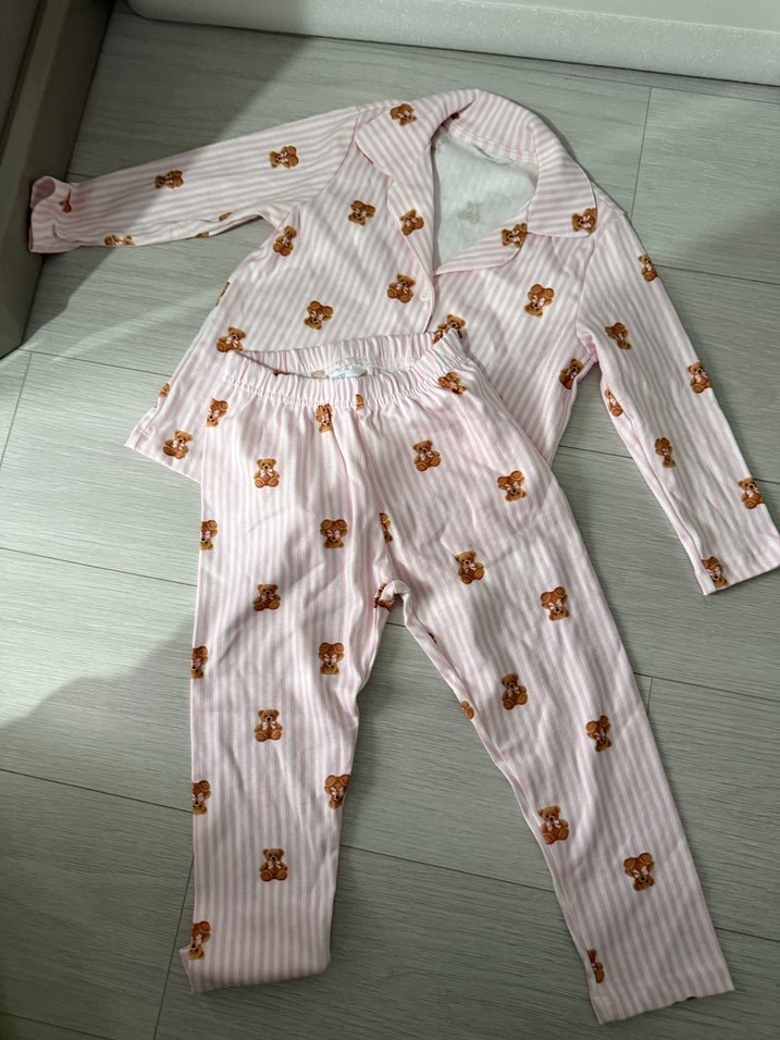 Pembe pastel renkte, ayıcık desenli, uzun kollu ve rahat kesimli kadın pijama takımı, konforlu uyku ve dinlenme için uygundur. Hiç kullanılmamıştır