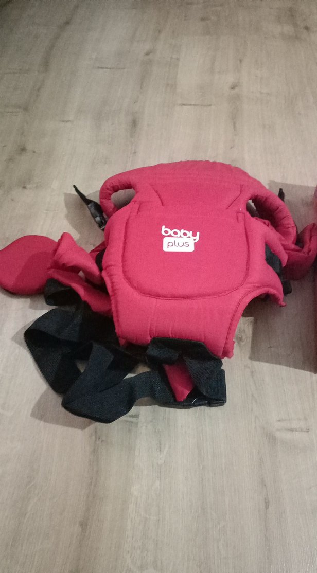 Ayarlanabilir kayışlara ve yumuşak kumaşa sahip pembe Baby Plus bebek taşıyıcı, rahat taşıma sağlar.