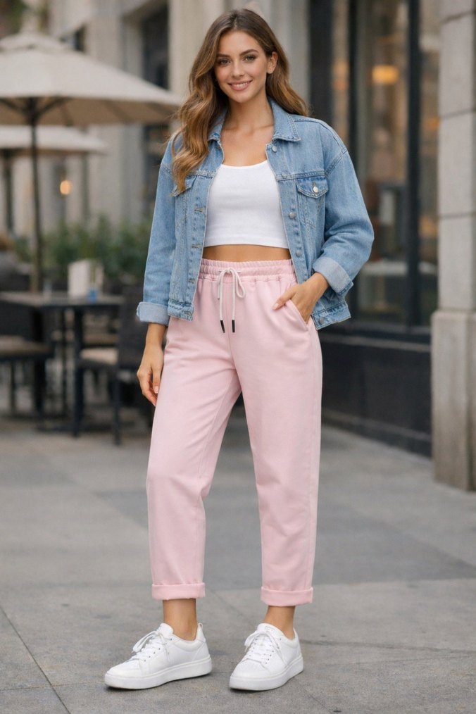 Pembe Bağcıklı Bol Kesim Kadın Eşofman