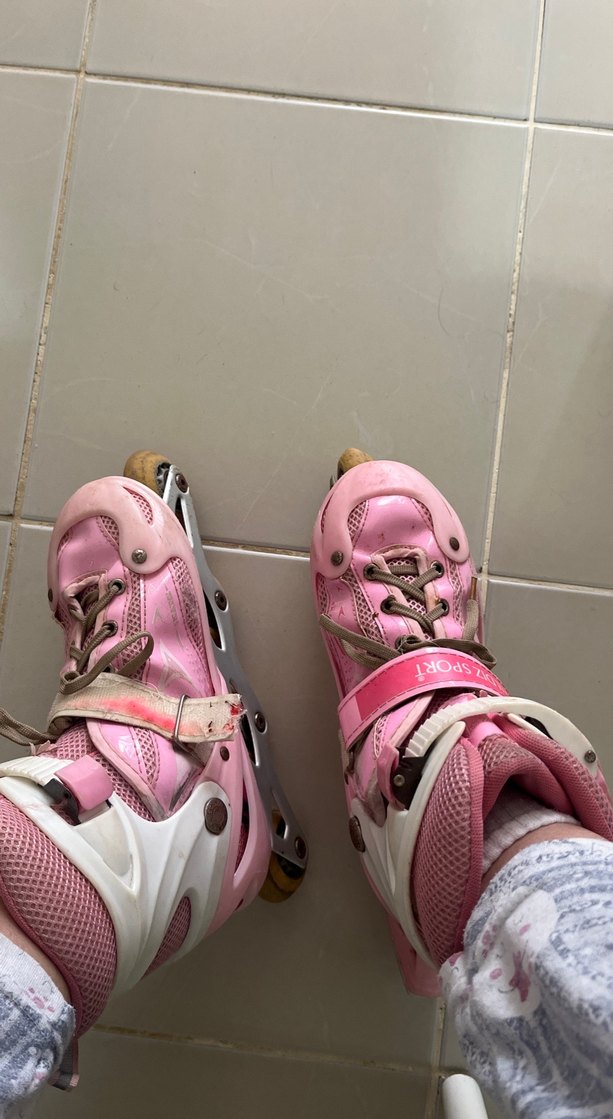 Pastel pembe renkli, bağcıklı ve kayışlı erkek paten ayakkabısı. Spor ve athleisure tarzına uygun, kauçuk tabanlı ve desensiz. Bir çırtı bozuk 37 42 arası numara