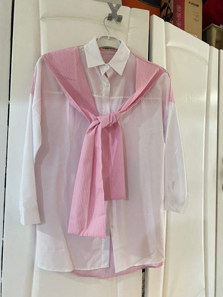 Pembe Bağcıklı Kadın Gömlek