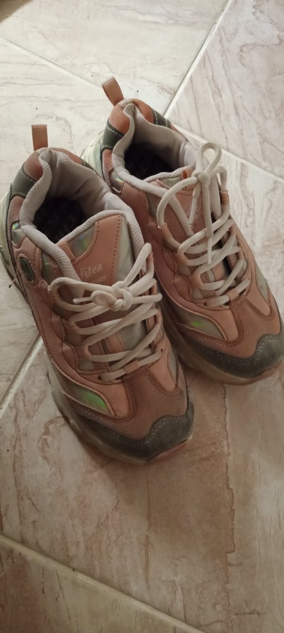 Pembe bağcıklı kadın sneakers, pastel tie-dye desenli, wedge topuklu ve kauçuk malzemeden yapılmıştır. Günlük kullanım için uygundur.