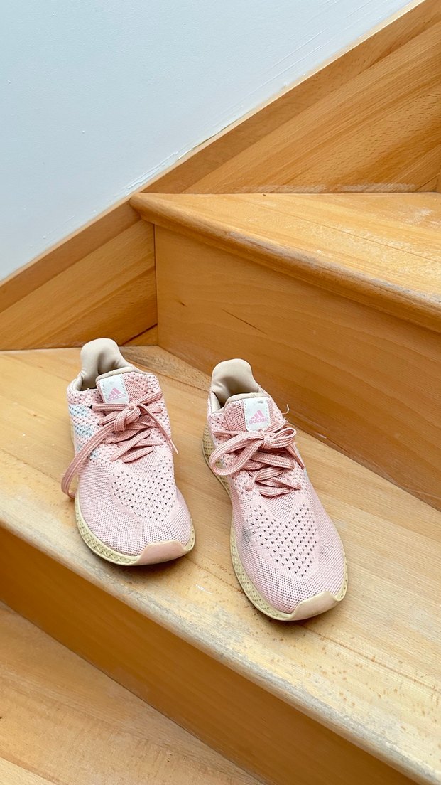 Bağcıklı, pastel pembe renkte, yumuşak kauçuk malzemeden kadın spor ayakkabısı. Rahat ve trend sokak stili için uygundur.