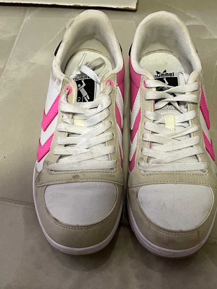 Açık pembe bağcıklı ve kauçuk tabanlı kadın spor ayakkabısı, rahat ve trend sokak stili için uygundur.