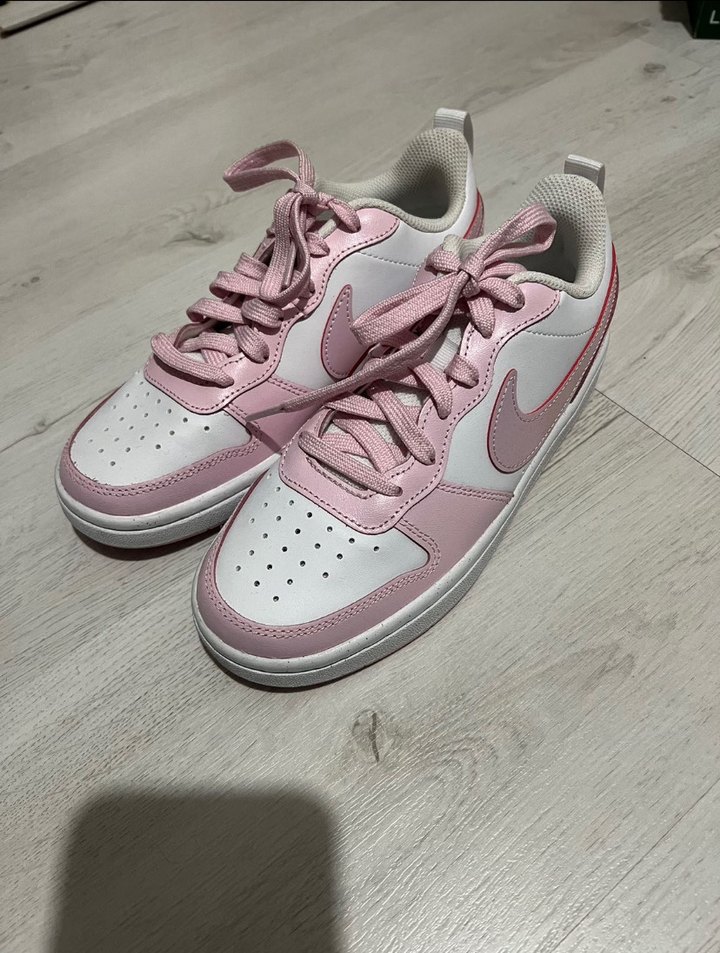 Pastel pembe bağcıklı, lastik tabanlı kadın spor ayakkabı biraz giydiğim için önlerinde kırılmalar var onun dışında sıkıntı sıkıntısı