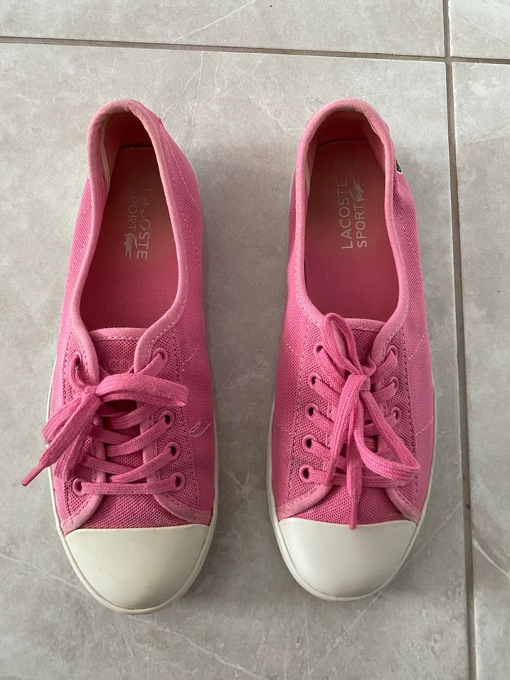 Pembe bağcıklı kadın spor ayakkabısı, düz kauçuk tabanlı, pastel tonlarda ve sade normcore tarzında. Günlük kullanım için uygundur.