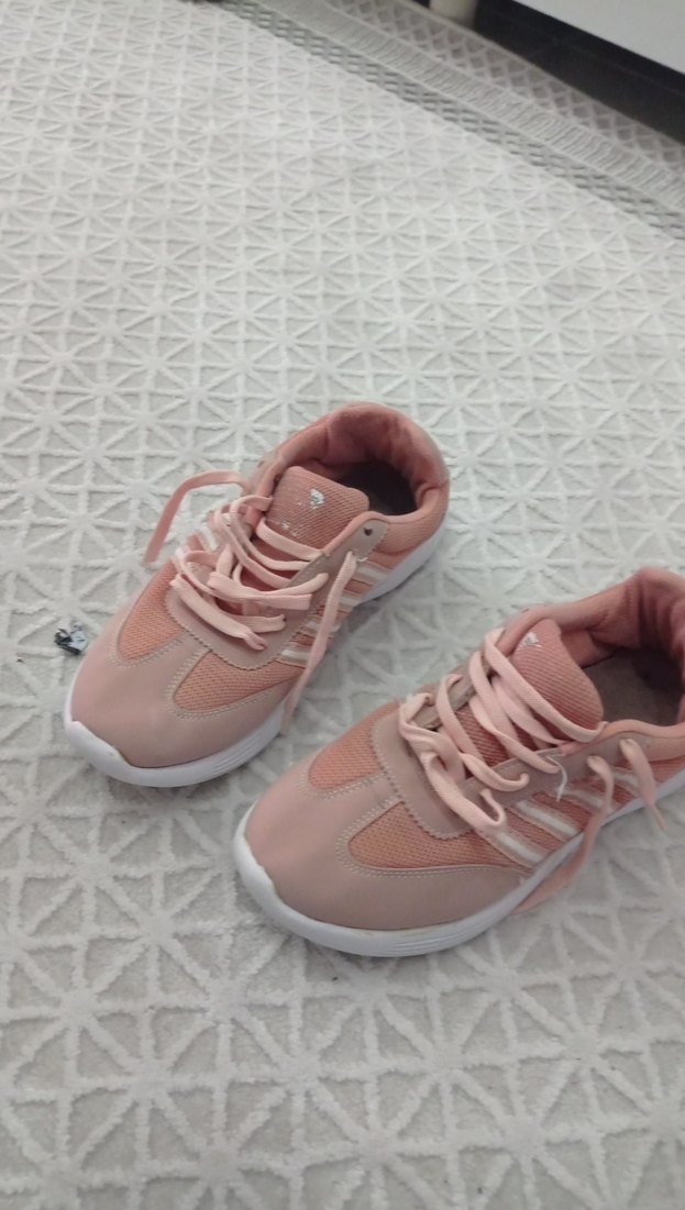 Pastel pembe renkte, bağcıklı ve ince topuklu kadın spor ayakkabısıdır. Kauçuk tabanıyla dayanıklıdır ve sokak modasına uygundur. iki çift fiyatı