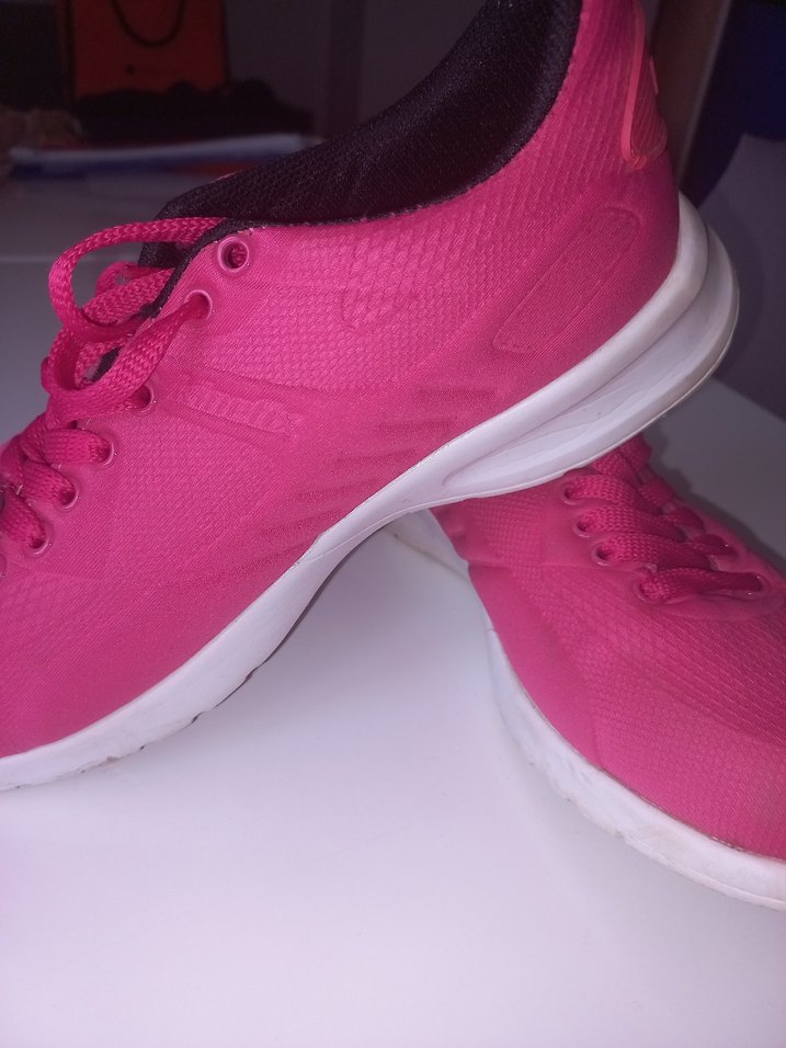 Canlı pembe renkte, bağcıklı ve kauçuk tabanlı kadın spor ayakkabısı. Sokak stili ve athleisure için tasarlanmış, stilettolu topuklu şık bir model. ♀️