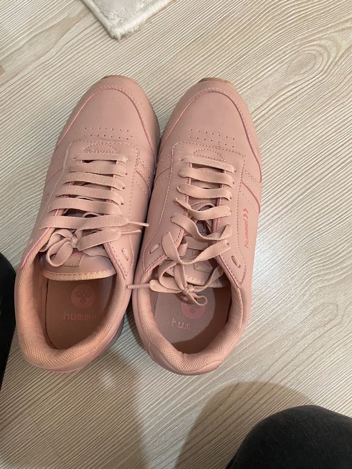 Pastel pembe, bağcıklı, stiletto topuklu kadın spor ayakkabısı, kauçuk malzemeden, spor ve sokak giyimine uygun.