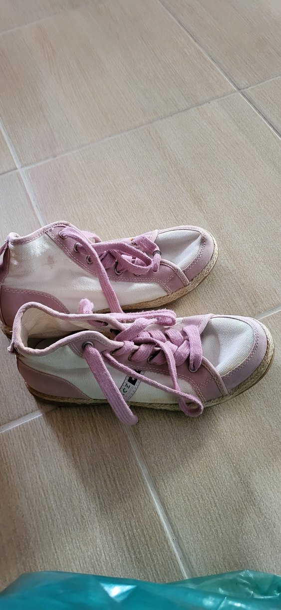 Pastel pembe renkte, bağcıklı kız çocuk spor ayakkabısı. Kauçuk malzemeden üretilmiş, desen içermeyen sokak tarzına uygun model.