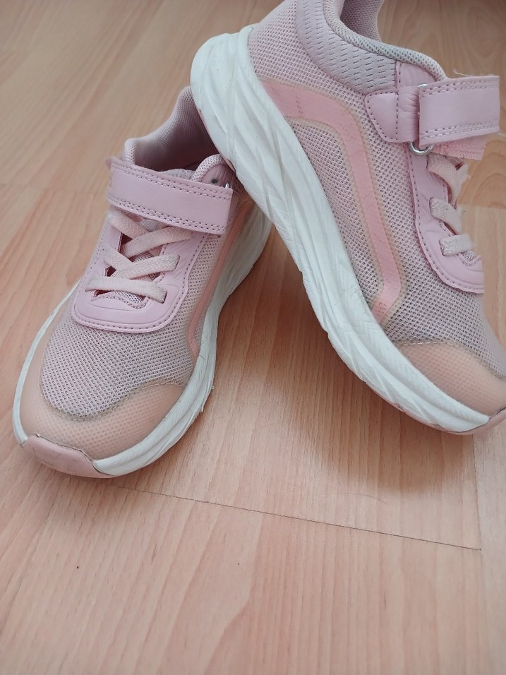 Nefes alabilir file kumaş ve kauçuk tabanlı, bağcıklı ve cırt cırtlı pembe kız çocuk spor ayakkabısı. Rahat sokak stili için uygundur.