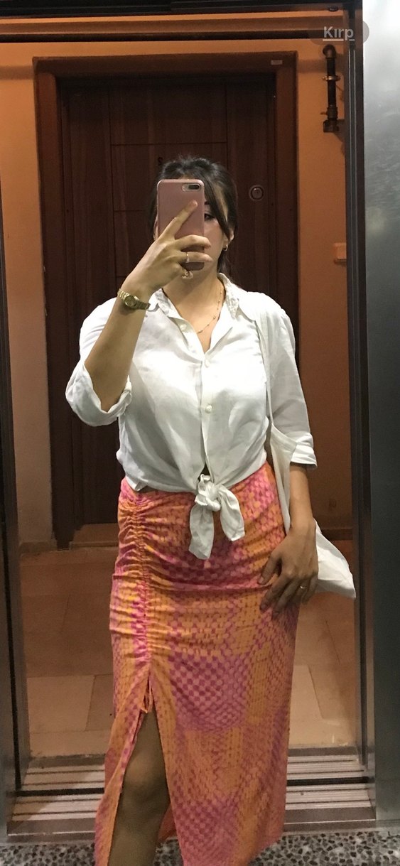 Pembe, bağcıklı midi etek, ipeksi dokuda, bağlamalı ve salaş kesim. Günlük kullanım için uygun, rahat bir tasarım.