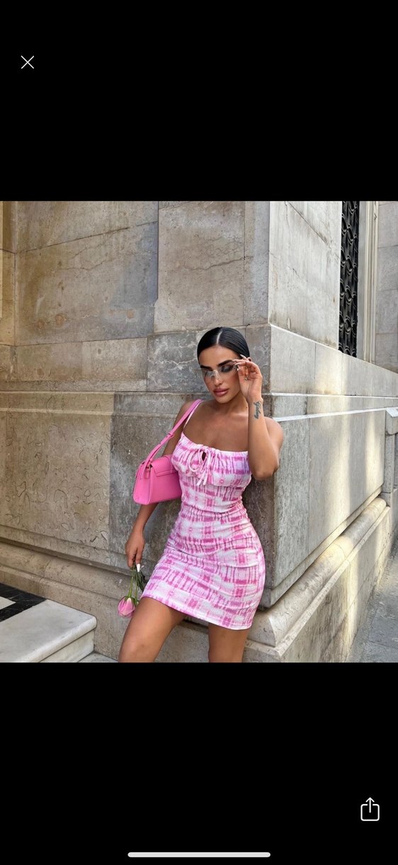 Pembe Bağcıklı Mini Elbise