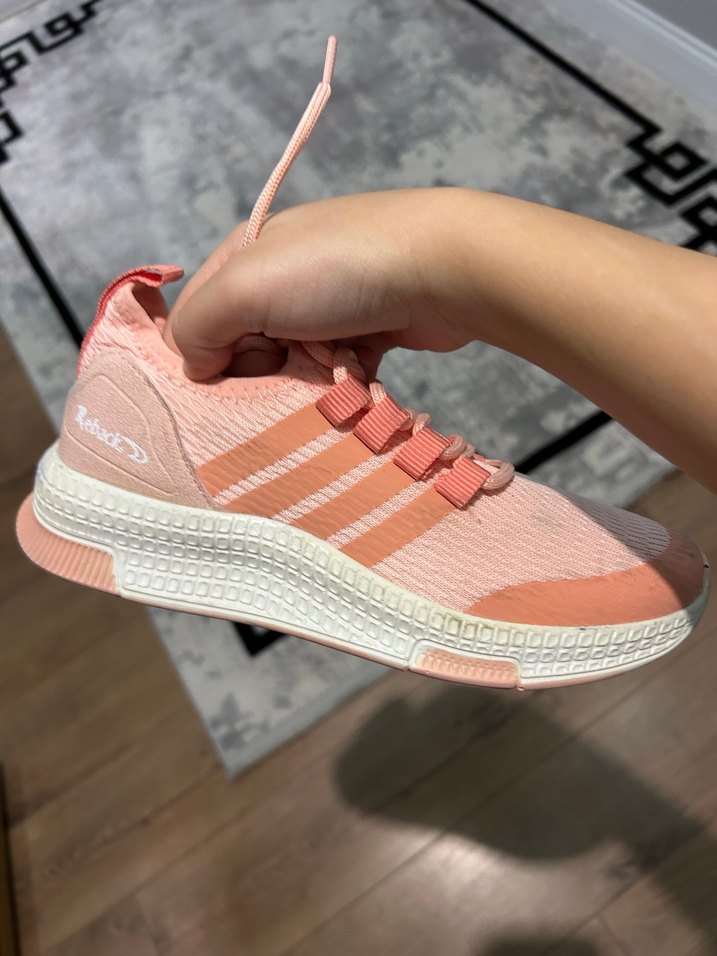 Pembe pastel tonlarda, bağcıklı ve stiletto topuklu sokak stili spor ayakkabı. Kauçuk malzemeden üretilmiştir, sportif ve trend görünümler için uygundur.