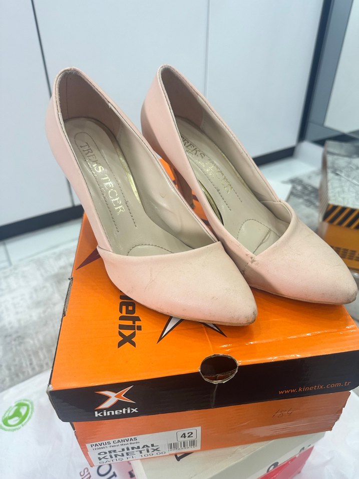 Temizlenmesi lazım seni kaç kere giydim ayağımı sıkıyor artık.Pembe renkte, bağcıklı detaylı, kauçuk malzemeden yapılmış stiletto topuklu ayakkabı. Modern klasik tarzda, ofis kullanımı için uygundur.