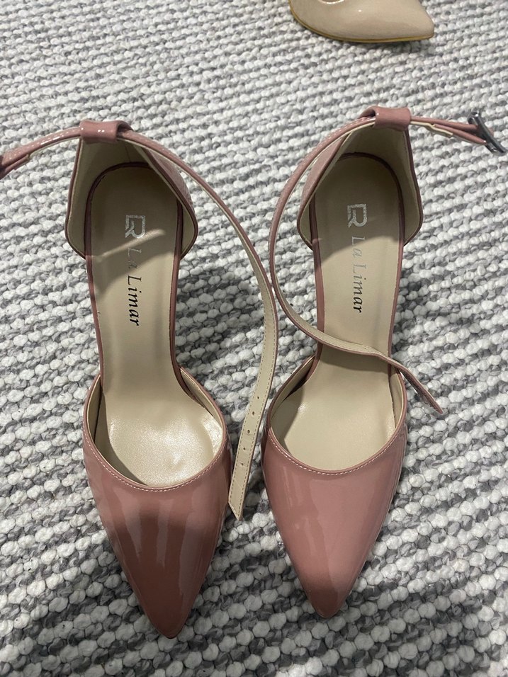 Pembe bağcıklı stiletto topuklu kadın ayakkabı, kauçuk malzemeden ve desensiz tasarıma sahip. Günlük kullanım için uygundur, trend ve Parisli tarzını yansıtır. 36 numara sadece 1 kez giyildi