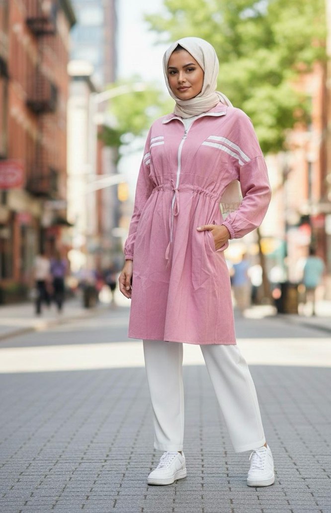 Pembe Bağcıklı Uzun Kollu Kadın Tunik