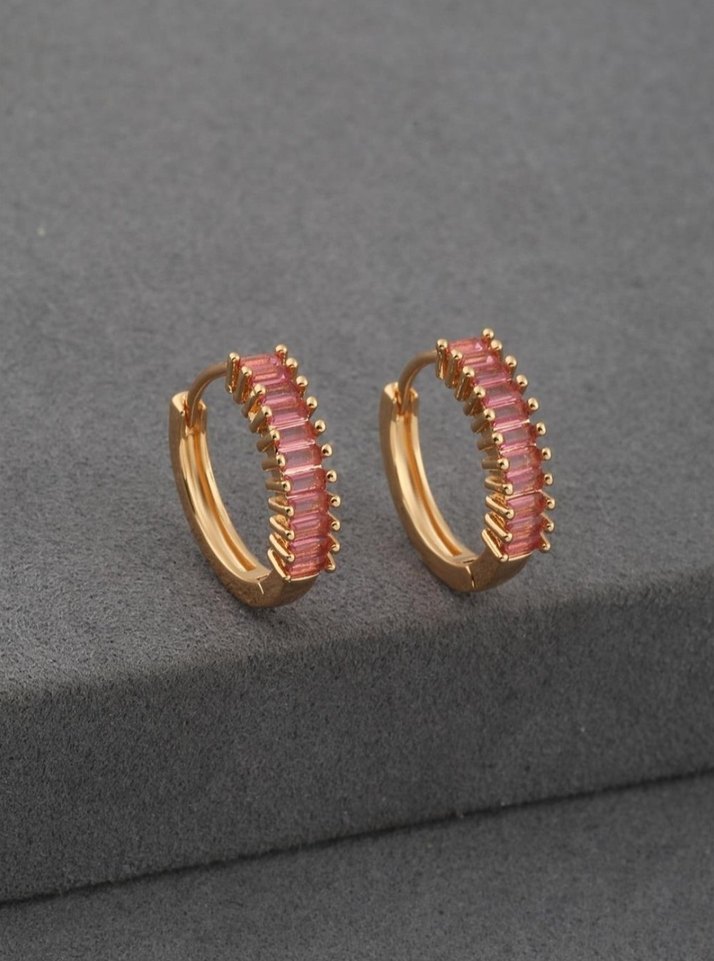 Pembe bagetli, kısa renkli halka küpeler, romantik akşamlar için şık ve trend bir seçimdir. Paslanmaz çelikten üretilmiştir. Kararma ve renk solması gibi deformasyonlar yaşanmaz. Sıvıya karşı dayanıklıdır. Havuz, deniz, duş gibi alanlarda sorunsuz bir kullanım imkanı sunar.