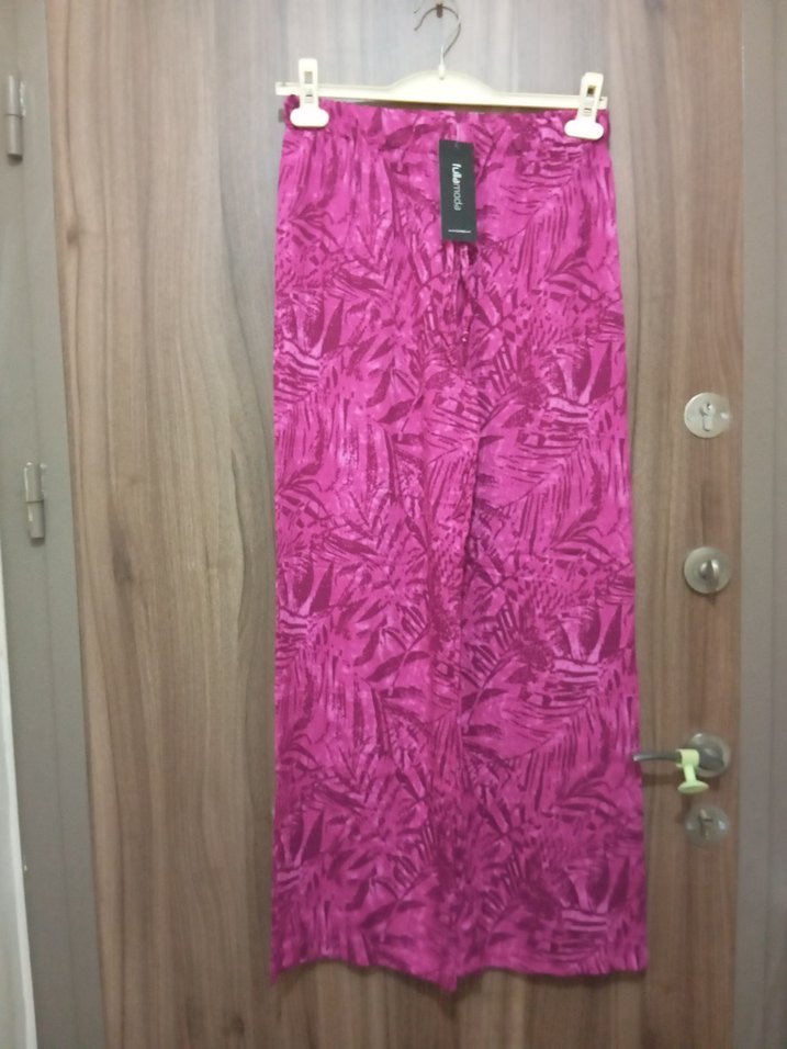 Uzun boylu, bol kesim,ve bağlama desenli koyu pembe kadın pantolonu, sentetik kumaştan günlük sokak stili için.