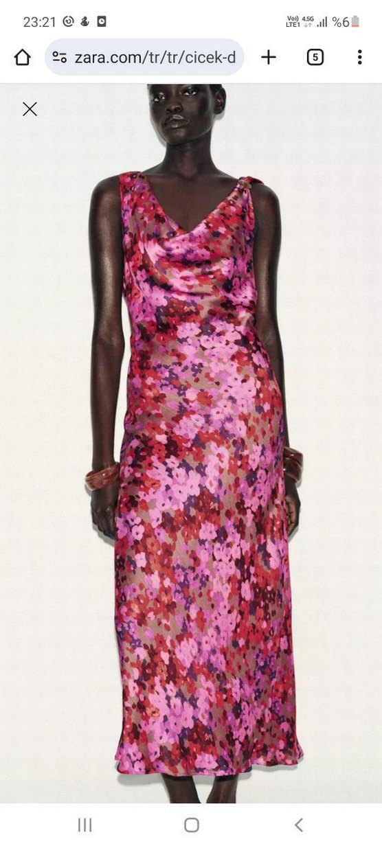 Pembe Bağlama Desenli Uzun Drapeli Elbise #zara