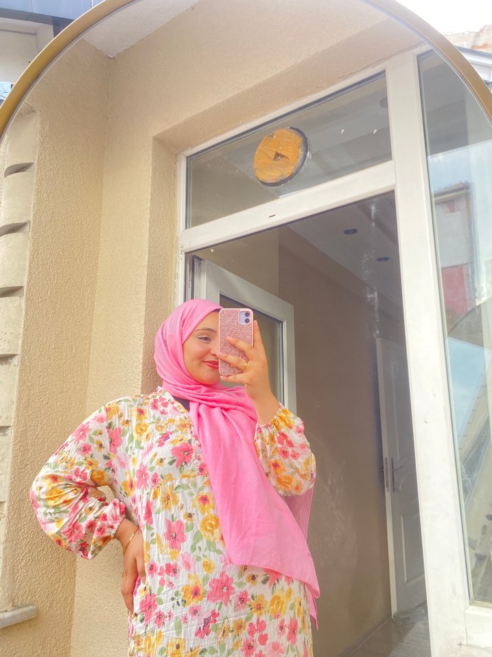Pembe Bağlama Desenli Uzun elbise