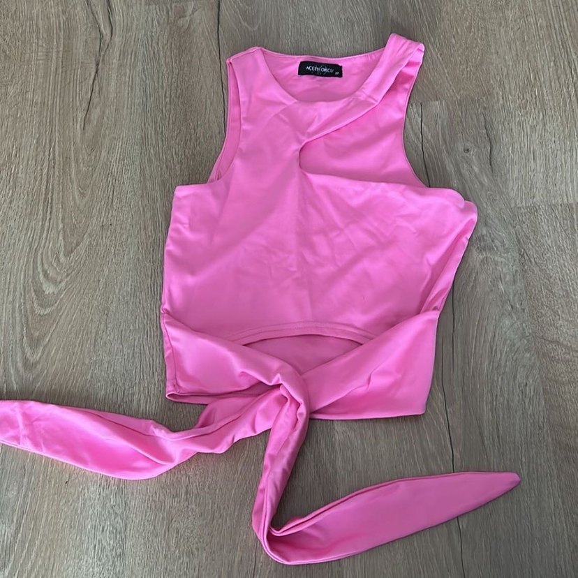 Pembe Bağlamalı Crop Bluz