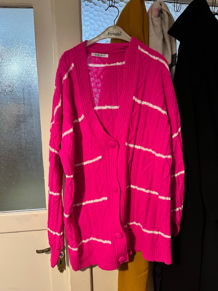 Pembe Bağlamalı Örgü Salaş Kadın Hırka