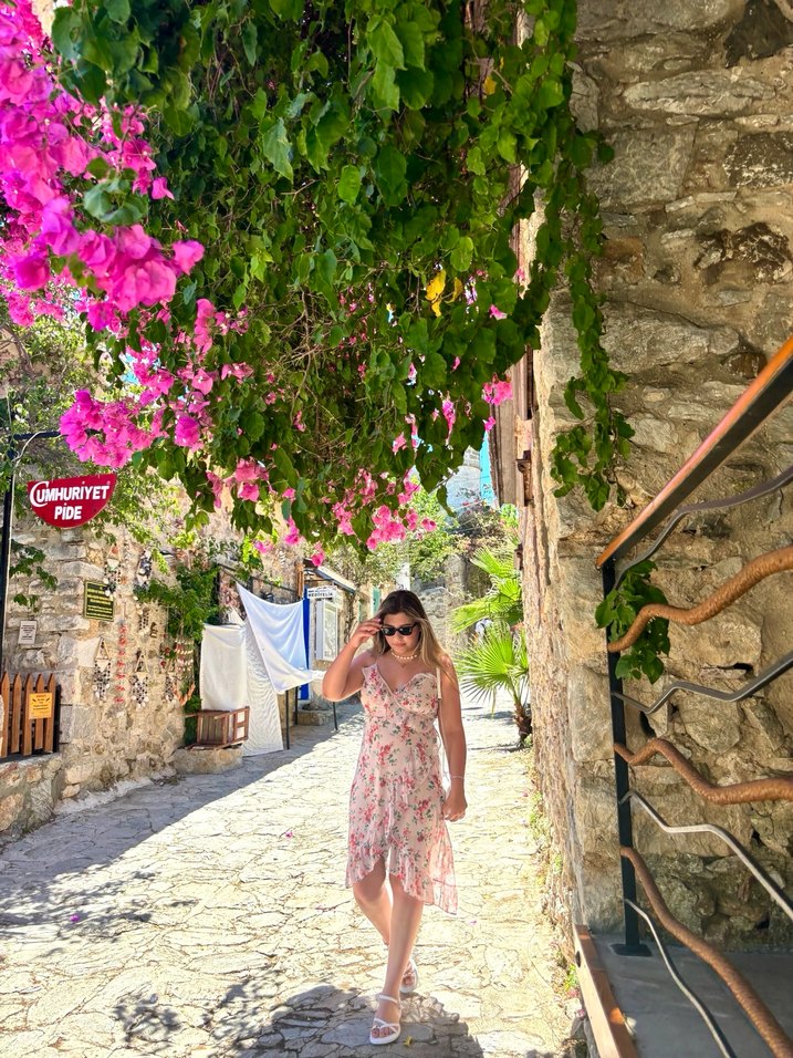 Pembe Bağlamalı Uzun Pamuk Elbise