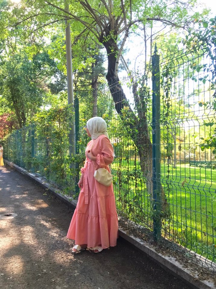 Pembe Bağlamalı Uzun Pamuklu Elbise