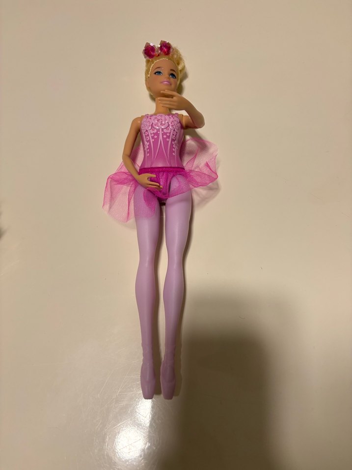 Pastel pembe bale kostümü, tütü ve uyumlu saç bandıyla bebek. Yumuşak pembe tonlarda klasik balerin görünümü sunar.