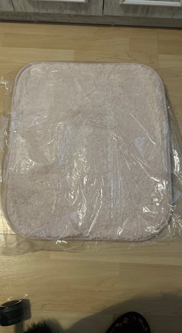 Bej renginde yumuşak dokulu, gri kenarlı banyo paspası, sade ve rahat bir kullanım sunar.