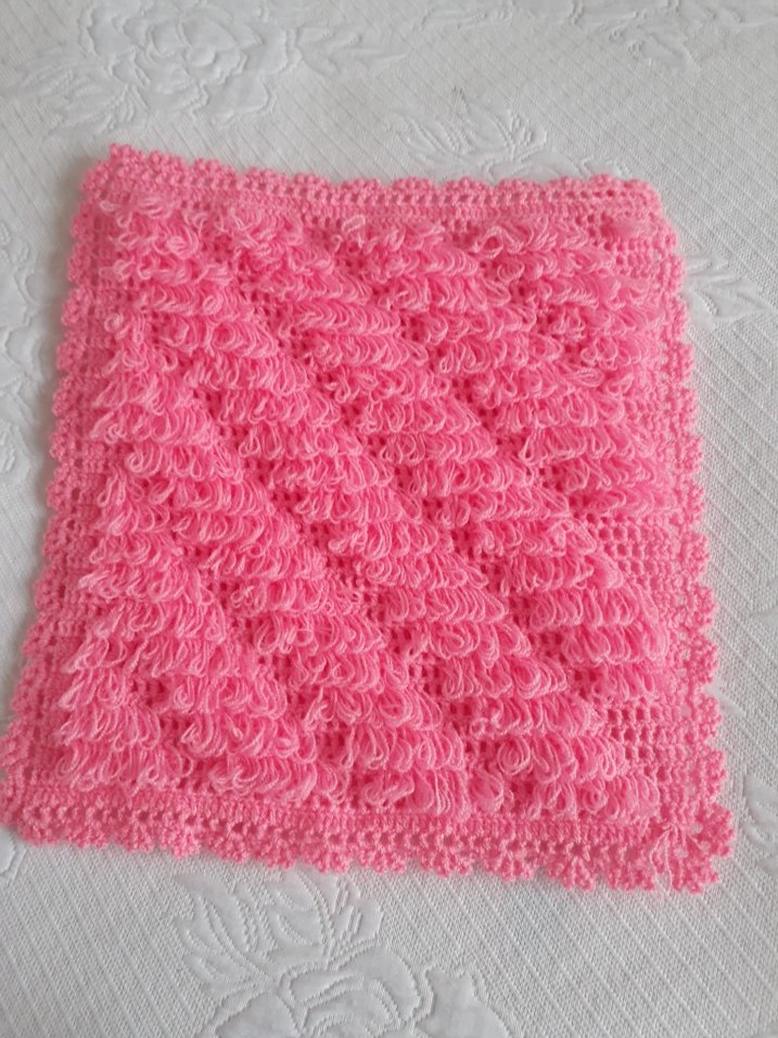 Renkli pembe, dokulu yüzeye sahip yumuşak banyo süngeri. Nazik temizleme için uygundur.