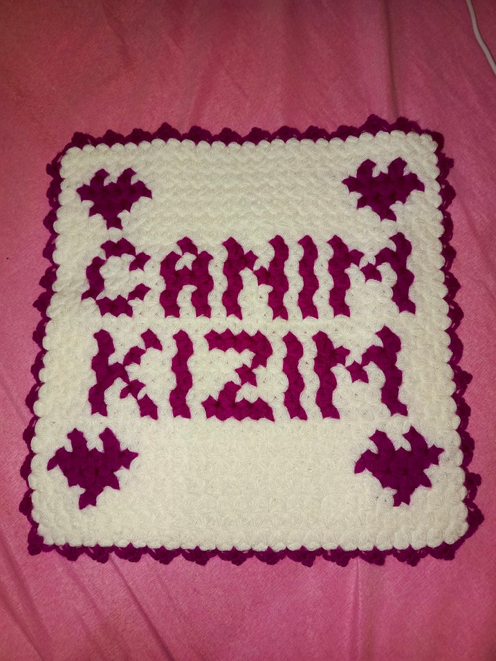 Pembe tonlarında, "Canım Kızım" yazılı dekoratif desenli banyo süngeri.